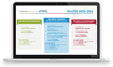 Tutti i contenuti del Master Eutekne 2025-2026 rimangono disponibili alla fruizione in modalità differita accreditata fino al 30 giugno 2026.